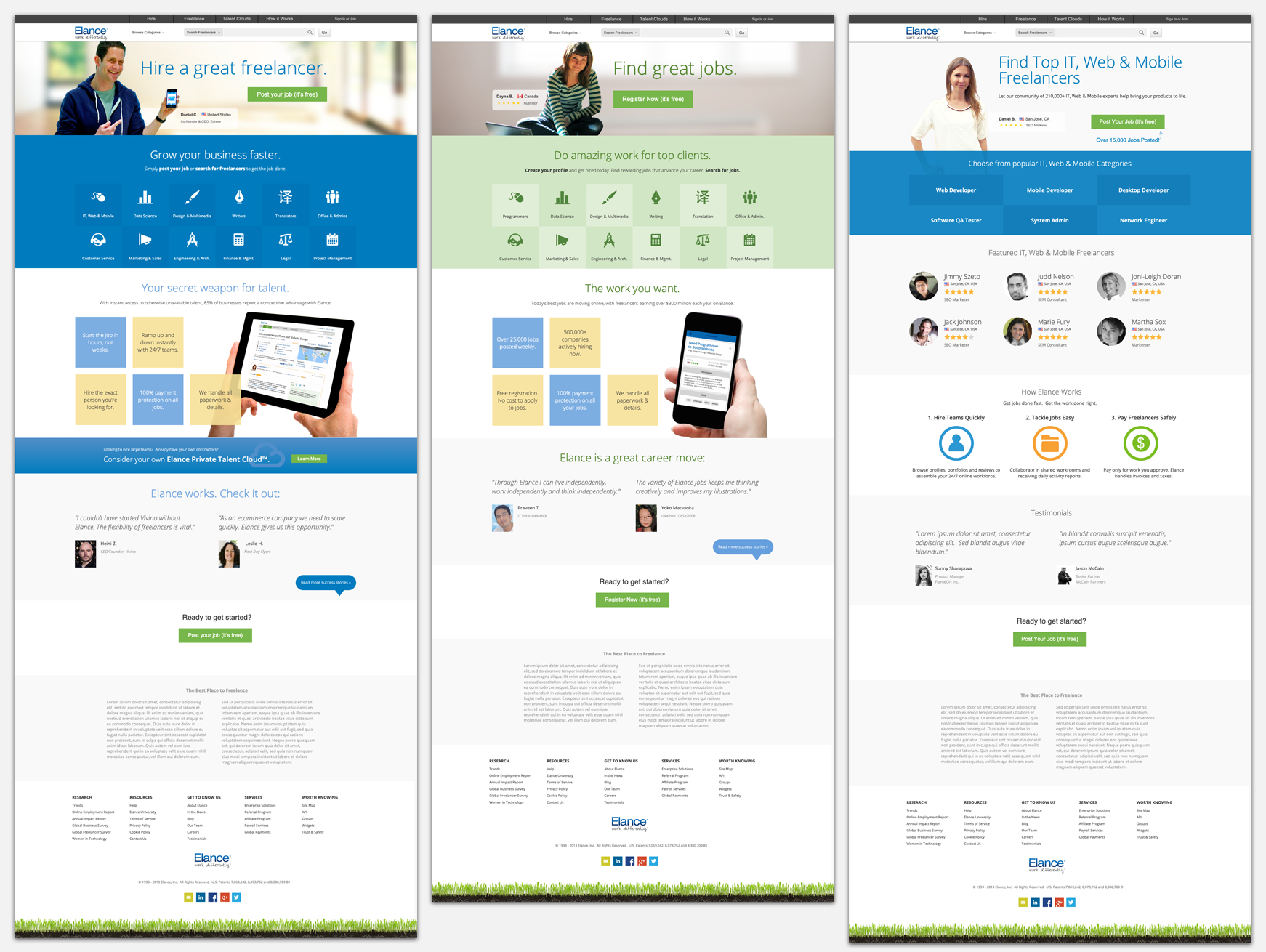 • New visitors lacked trust in Elance, didn't understand how it works, and lacked a sense of security