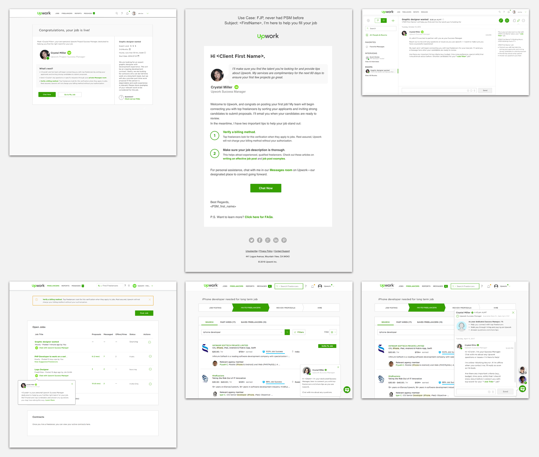 • Establish and build trust in PSMs (and reduce client confusion) by credentializing them consistently throughout the flow as official Upwork representatives